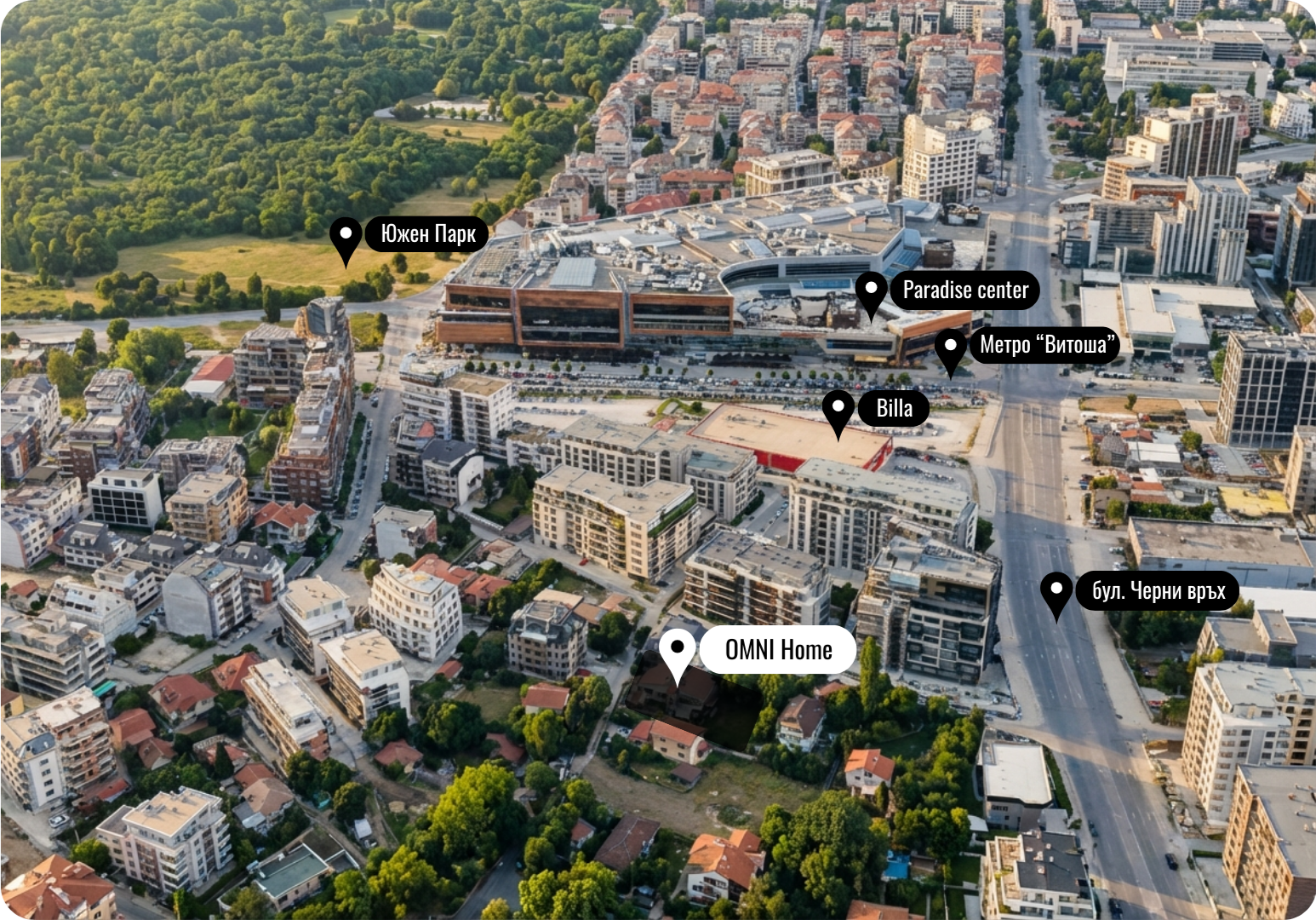 OMNI Home се намира в една от най-търсените и бързо развиващи се зони на София — ж.к. Кръстова вада.